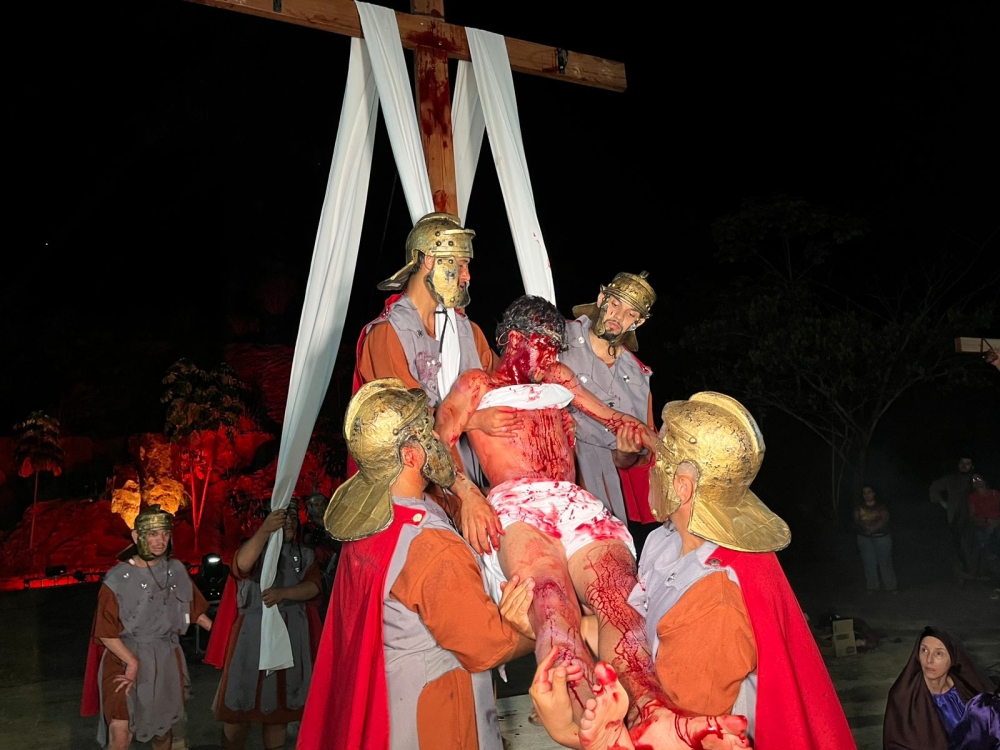 Com a presença significativa de espectadores, a encenação aborda a passagem bíblica das últimas horas de Jesus antes e durante a crucificação, com um cenário e figurino que retratam com fidelidade as passagens registradas nas Escrituras Sagradas. Nessa edição, o “Auto da Paixão de Cristo” foi narrado sob a ótica do apóstolo Pedro, retratando a versão de uma testemunha ocular dos acontecimentos da crucificação de Cristo.