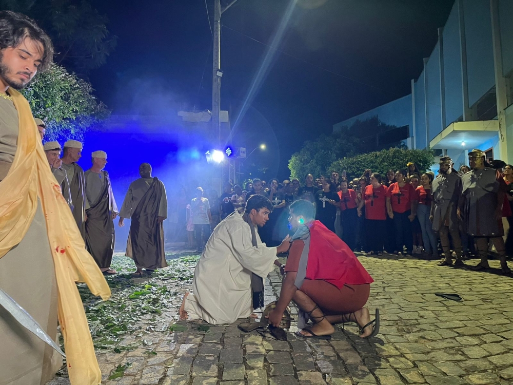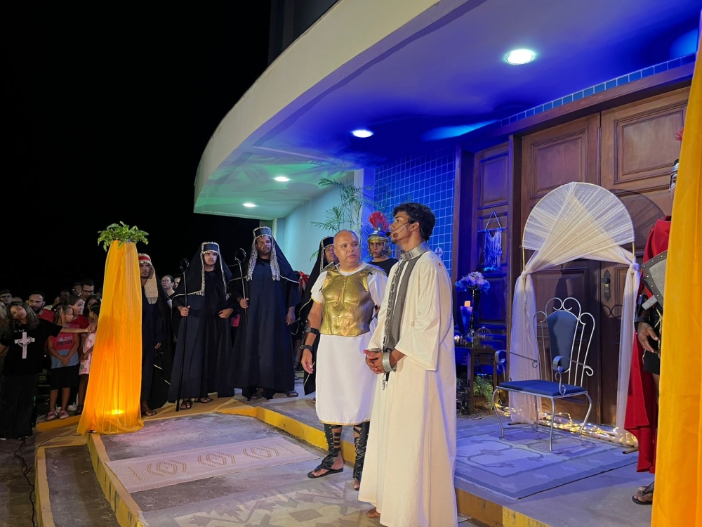 Com a presença significativa de espectadores, a encenação aborda a passagem bíblica das últimas horas de Jesus antes e durante a crucificação, com um cenário e figurino que retratam com fidelidade as passagens registradas nas Escrituras Sagradas. Nessa edição, o “Auto da Paixão de Cristo” foi narrado sob a ótica do apóstolo Pedro, retratando a versão de uma testemunha ocular dos acontecimentos da crucificação de Cristo.