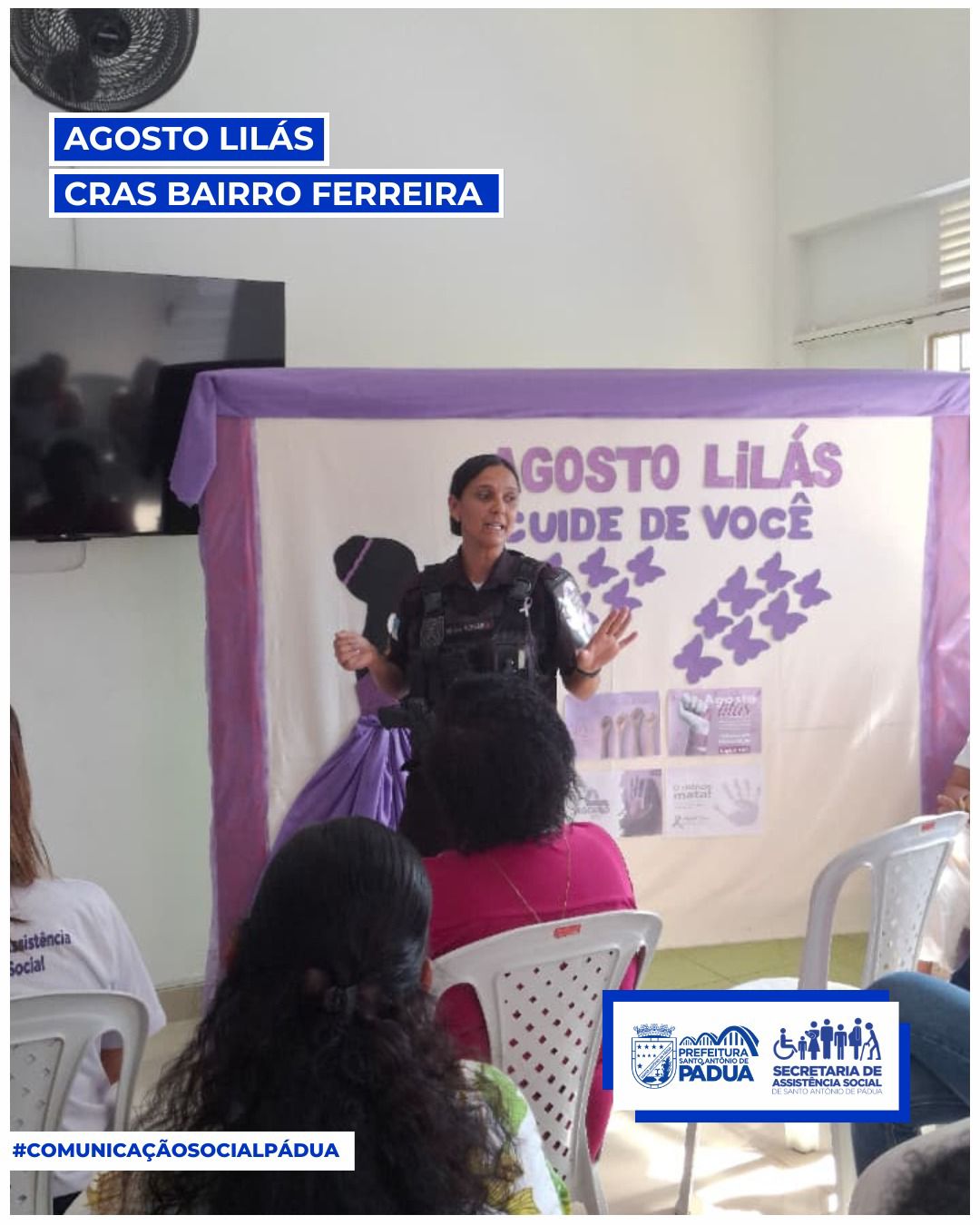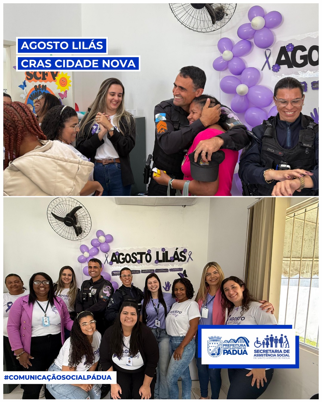 Mês Lilás de conscientização promove encontro na Cidade Nova A Administração Pública Municipal de Pádua continua realizando ações de conscientização durante o mês do “agosto Lilás”, uma iniciativa da Secretaria de Assistência e Desenvolvimento Social juntamento com Conselho Municipal da Mulher com a finalidade de combater e proteger mulheres vítimas de violência. Nesta quinta