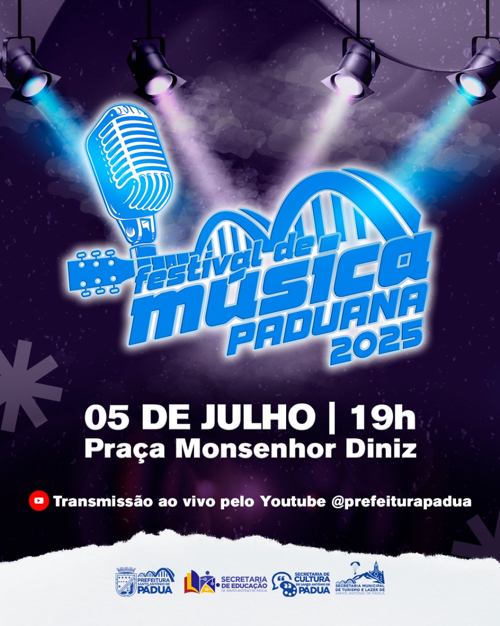 Festival de Música Paduana Evento promove oportunidade para alunos da rede pública e privada de ensino mostrarem seu talento musical O Festival de Música Paduana já se tornou tradição no calendário oficial do município. Nos últimos anos cada edição tem crescido e mobilizado o público que testemunha o nascimento de jovens talentos da música paduana espalhados nas instituiç